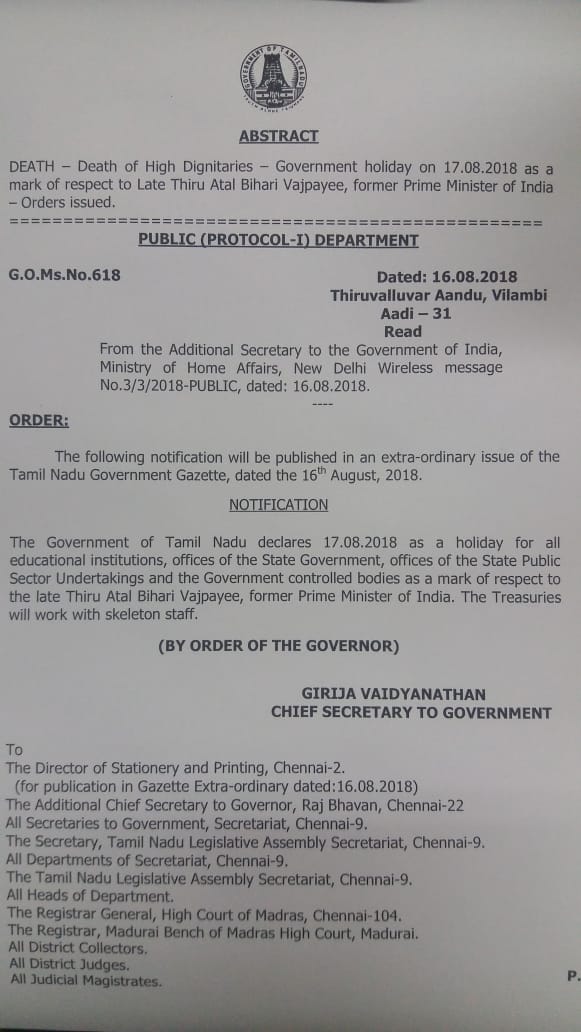 Flash news -அரசாணை எண் 618- நாள்-16.08.2018-தமிழகத்தில் நாளை 17.08.2018 அரசு விடுமுறை